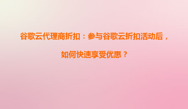 2025-09-04谷歌云代理商折扣:参与活动后快速享受优惠的指南 为什么选择谷歌云? 谷歌云作为全球领先的云计算平台,凭借其强大的基础设施、创新的技术解决方案以及全球覆盖的网络节点,为用户提供了高效、安全且可扩...
