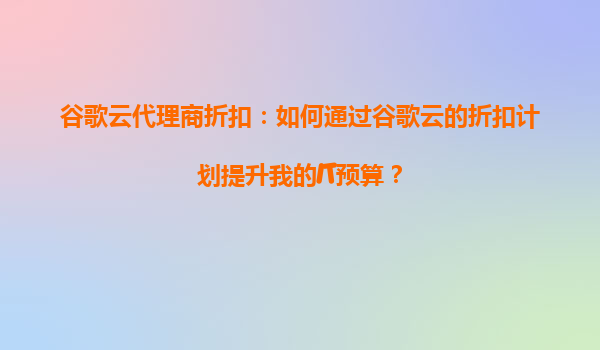 2025-09-03谷歌云代理商折扣:如何通过谷歌云的折扣计划提升我的IT预算? 在当今数字化时代,云计算已成为企业IT基础设施的核心组成部分。然而,云服务的成本往往是企业预算中的一大挑战。谷歌云(GoogleCloud)作为全球领...