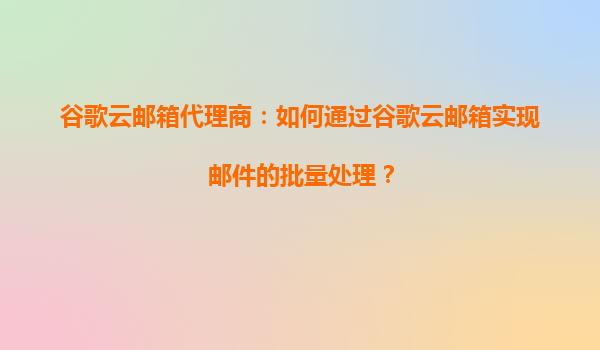2025-09-02谷歌云邮箱代理商:如何通过谷歌云邮箱实现邮件的批量处理? 引言 在当今快节奏的商业环境中,高效的邮件处理能力是企业提高工作效率的关键之一。谷歌云邮箱(GmailforBusiness)...