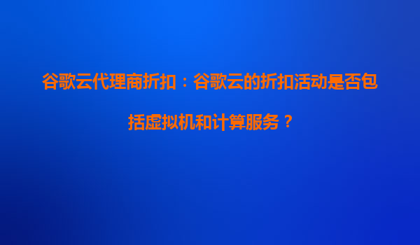 2025-09-02谷歌云代理商折扣:谷歌云的折扣活动是否包括虚拟机和计算服务? 在当今数字化的时代,云计算已成为企业提升效率和降低成本的关键工具。谷歌云作为全球领先的云计算服务提供商之一,通过其强大的基础设施...