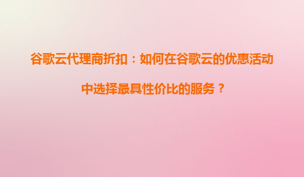 2025-09-02谷歌云代理商折扣:如何在谷歌云的优惠活动中选择最具性价比的服务? 一、谷歌云的核心优势 在考虑通过代理商获取谷歌云折扣前,首先需要理解谷歌云的核心竞争力: 全球化基...