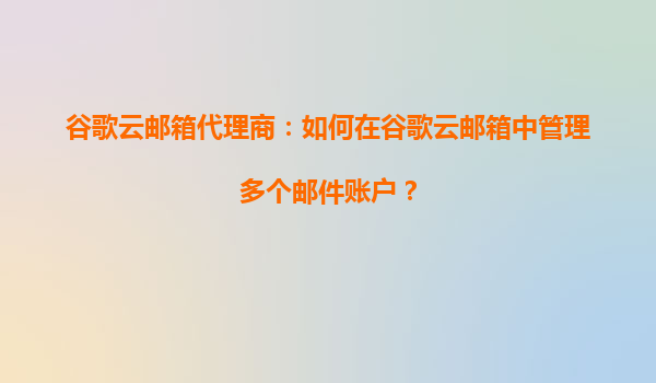 2025-09-02谷歌云邮箱代理商:如何在谷歌云邮箱中管理多个邮件账户 为什么选择谷歌云邮箱管理多账户 谷歌云邮箱以其强大的功能和稳定性受到企业用户的广泛青睐。通过谷歌云邮箱,代理商可以轻松管理多个邮件账户...