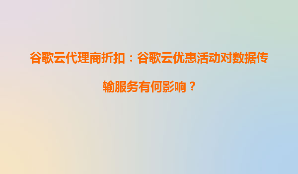 2025-08-31谷歌云代理商折扣:谷歌云优惠活动对数据传输服务的影响 引言 随着云计算技术的快速发展,越来越多的企业选择将业务迁移到云端。谷歌云(GoogleCloud)作为全...
