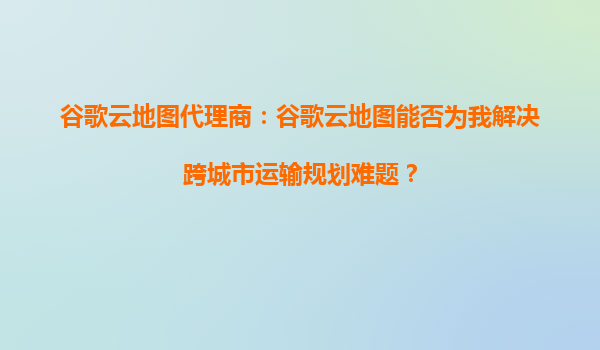 2025-08-29谷歌云地图代理商:谷歌云地图能否为我解决跨城市运输规划难题? 引言:跨城市运输的挑战 在现代物流和供应链管理中,跨城市运输规划是一项复杂且关键的任务。...