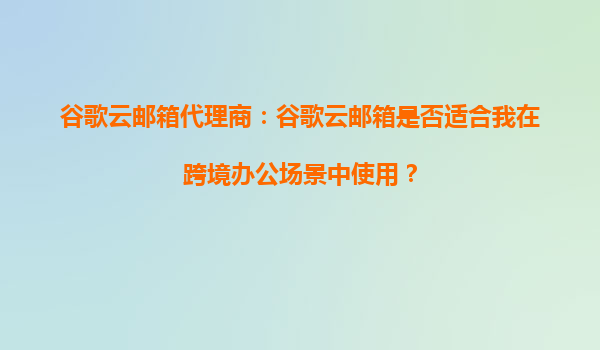 2025-08-29谷歌云邮箱代理商:谷歌云邮箱是否适合我在跨境办公场景中使用? 在全球化的商业环境中,跨境办公已成为许多企业的常态。无论是跨国公司、中小型企业还是自由职业者,都需要一个高效、安全且稳定的电子邮件解决...