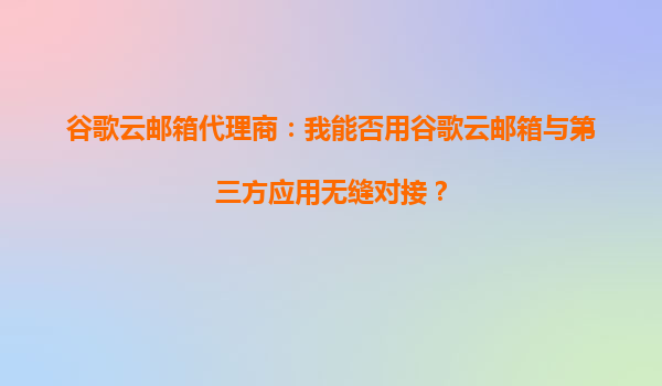 2025-08-29谷歌云邮箱代理商:我能否用谷歌云邮箱与第三方应用无缝对接? 在当今数字化办公环境中,企业邮箱与第三方应用的集成能力已成为提升效率的关键。谷歌云邮箱(GoogleWorkspace)作为全球领先的企业级邮件解决方案...