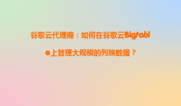 2025-08-28谷歌云代理商:如何在谷歌云Bigtable上管理大规模的列族数据? 引言 随着大数据时代的到来,企业需要处理的数据量呈指数级增长。如何高效地存储、管理和查询这些数据成为了一个关键问题。谷歌云Bigtable作...