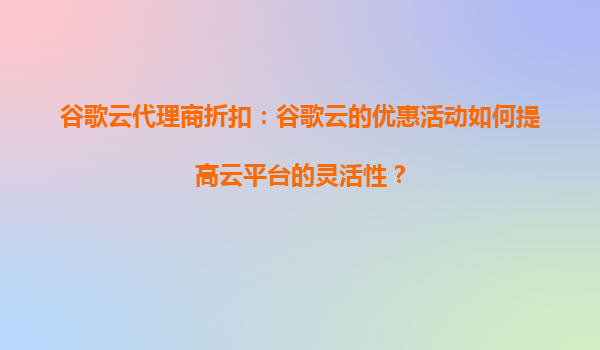 2025-08-28谷歌云代理商折扣:谷歌云的优惠活动如何提高云平台的灵活性? 引言 随着云计算技术的快速发展,越来越多的企业开始将业务迁移到云端。谷歌云(GoogleCloud)作为全球领先的云服务提供...