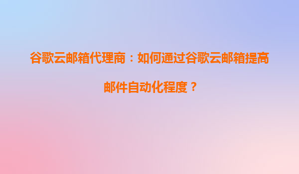 谷歌云邮箱代理商:如何通过谷歌云邮箱提高邮件自动化程度 引言:邮件自动化的商业价值 在数字化时代,邮件自动化已成为企业提升沟通效率、降低运营成本的核心工具。谷歌云邮箱(GoogleWorkspace)凭借其...