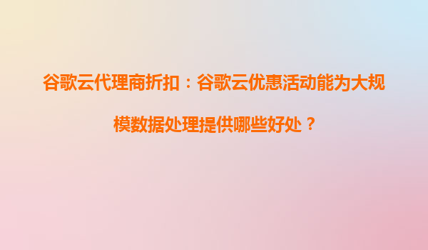 2025-08-26谷歌云代理商折扣:谷歌云优惠活动能为大规模数据处理提供哪些好处? 一、谷歌云的核心优势与大规模数据处理的契合点 谷歌云(GoogleCloudPlatform,GCP)凭借其全球基础设施、高性能计算能力和开源生态...