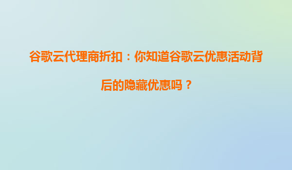 2025-08-26谷歌云代理商折扣:如何通过谷歌云的折扣活动优化你的云资源配置? 一、谷歌云的核心优势与代理商折扣的价值 谷歌云(GoogleCloudPlatform,GCP)凭借其全球基础设施、AI/ML集成能力、...
