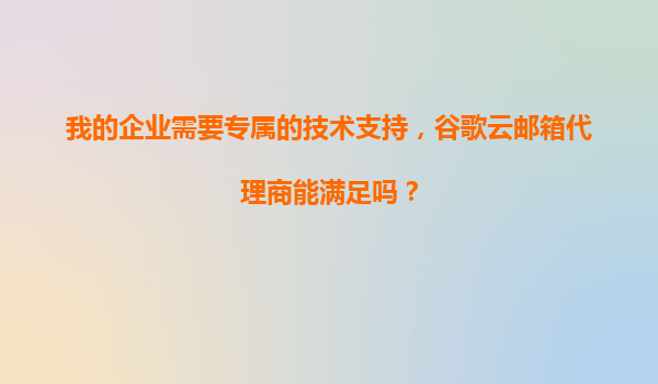 2025-11-04我的企业需要专属的技术支持,谷歌云邮箱代理商能满足吗? 一、企业专属技术支持的挑战与需求 数字化时代,企业邮箱系统不仅是沟通工具,更是数据安全和协作效率的核心载体。许多企业在使用云邮箱服务时面临...