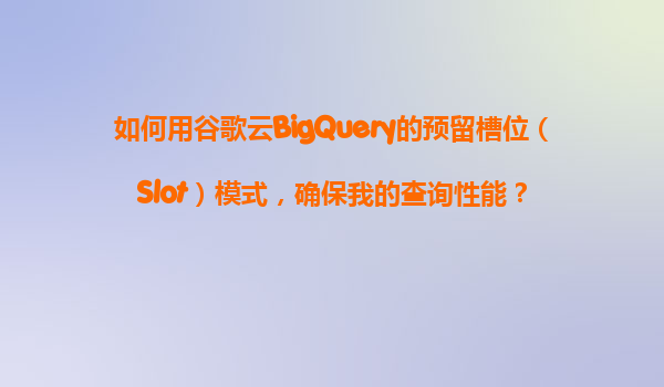 2025-11-05如何用谷歌云BigQuery的预留槽位(Slot)模式确保查询性能 引言 在大数据时代,高效的数据查询和分析能力对企业至关重要。谷歌云BigQuery作为一款领先的无服务器数据仓库,提供了强大的分析能力。其中...