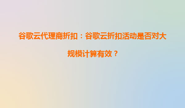 2025-08-25谷歌云代理商折扣:谷歌云折扣活动是否对大规模计算有效? 在当今数字化时代,云计算已成为企业IT基础设施的核心组成部分。谷歌云(GoogleCloud)作为全球领先的云服务提供商之一,凭借其强大的技术实力和灵活...