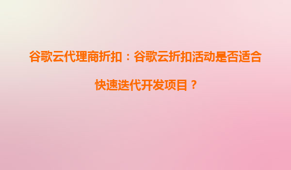 2025-08-25谷歌云代理商折扣:助力快速迭代开发项目的理想选择 快速迭代开发的核心需求 在当今数字化时代,快速迭代开发已成为企业保持竞争力的关键。这类项目通常需要频繁的代码部署、测试环境快速搭建以及弹性伸缩...