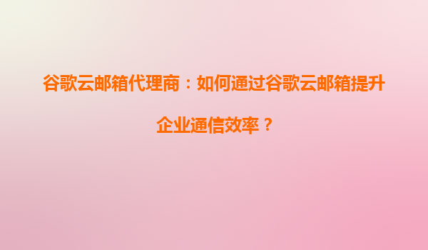 谷歌云邮箱代理商:如何通过谷歌云邮箱提升企业通信效率? 一、谷歌云邮箱的核心优势 谷歌云邮箱(GoogleWorkspace,原GSuite)作为企业级电子邮件解决方案,凭借以下核心优势成为全球企业的首选: ...
