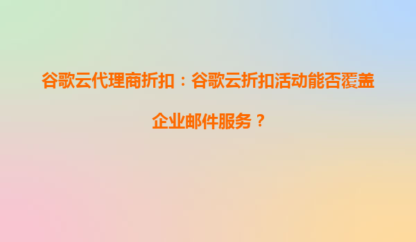 2025-08-25谷歌云代理商折扣:谷歌云折扣活动能否覆盖企业邮件服务? 引言 随着企业数字化转型的加速,云计算服务已成为企业IT基础设施的核心组成部分。谷歌云(GoogleCloud)作为全球领先的云服务提供商之一,凭借...