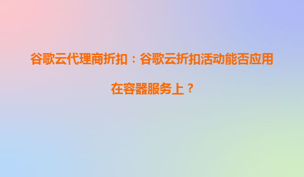 2025-08-25谷歌云代理商折扣:谷歌云折扣活动能否应用在容器服务上? 引言 随着云计算技术的快速发展,越来越多的企业开始采用云服务来优化其IT基础设施。谷歌云(GoogleCloud)作为全球领先的云服务提供商之一,凭...