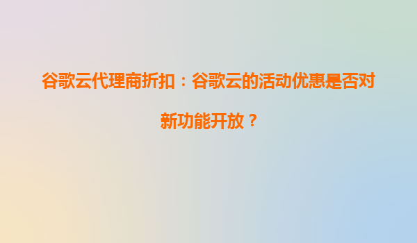 2025-08-24谷歌云代理商折扣:谷歌云的活动优惠是否对新功能开放? 在云计算市场竞争日益激烈的今天,谷歌云(GoogleCloud)凭借其强大的技术实力和灵活的商业模式,吸引了大量企业用户。而作为谷歌云的重要合作伙伴,谷...