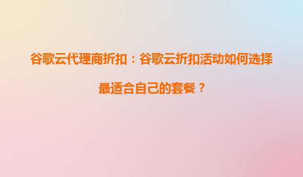 谷歌云代理商折扣:如何选择最适合自己的套餐? 一、谷歌云的核心优势 在选择云服务套餐前,首先需要了解谷歌云(GoogleCloudPlatform,GCP)的独特优势: 全球基础设施:覆...