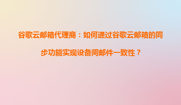 2025-08-23谷歌云邮箱代理商:如何通过谷歌云邮箱的同步功能实现设备间邮件一致性? 在当今快节奏的商业环境中,电子邮件作为沟通的主要工具之一,其一致性和可靠性至关重要。谷歌云邮箱(GmailforBusiness)作为企业级...