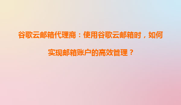 2025-08-22谷歌云邮箱代理商:如何实现邮箱账户的高效管理? 一、谷歌云邮箱的核心优势 作为全球领先的企业级邮箱解决方案,谷歌云邮箱(GoogleWorkspace)凭借以下优势成为众多企...