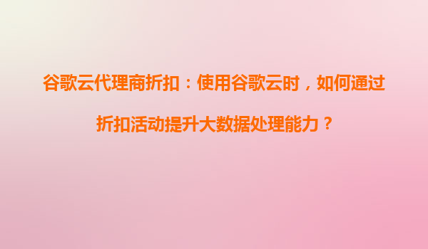 2025-08-22谷歌云代理商折扣:使用谷歌云时,如何通过折扣活动提升大数据处理能力? 一、谷歌云的核心优势与大数据处理能力 谷歌云(GoogleCloudPlatform,GCP)凭借其基础设施和技术能力,在全球云计算市...