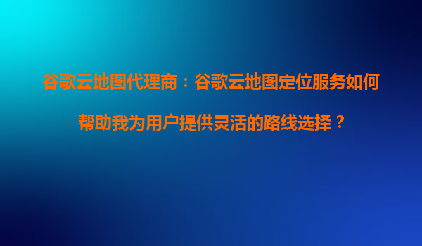 谷歌云地图代理商:谷歌云地图定位服务如何帮助我为用户提供灵活的路线选择? 引言 在数字化时代,地图和定位服务已成为我们日常生活的重要组成部分。无论是寻找最佳路线、避开交通拥堵,还是规划复杂的...