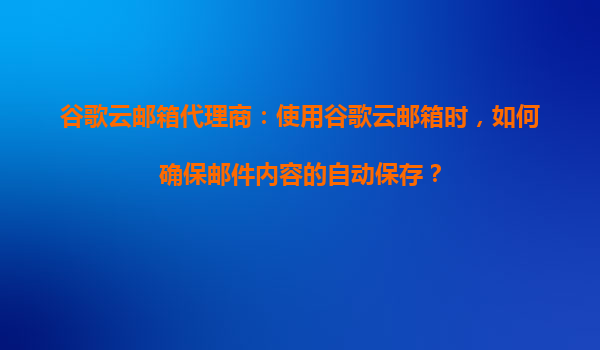 2025-08-21谷歌云邮箱代理商:使用谷歌云邮箱时,如何确保邮件内容的自动保存? 在当今数字化时代,电子邮件已成为企业和个人沟通的重要工具之一。然而,随着邮件数量的增加,确保邮件内容的自动保存和备份变得至关重要。谷歌...