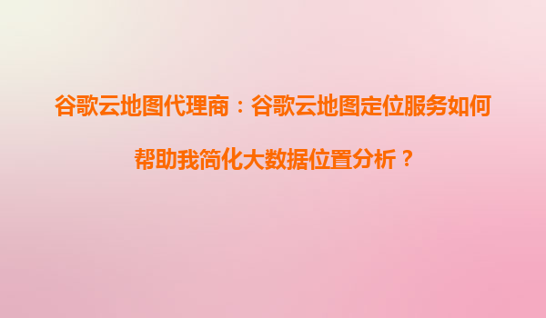 2025-08-21谷歌云地图代理商:谷歌云地图定位服务如何帮助我简化大数据位置分析? 引言 在当今数据驱动的世界中,地理位置信息成为企业决策的关键因素之一。无论是物流、零售还是营销,高效的位置数据分...