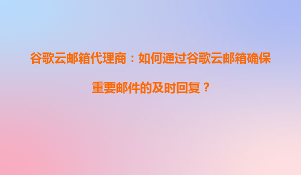 2025-08-21谷歌云邮箱代理商:如何通过谷歌云邮箱确保重要邮件的及时回复? 一、引言 在当今快节奏的商业环境中,电子邮件是企业和客户之间最重要的沟通方式之一。尤其是对于谷歌云邮箱代理商来说...