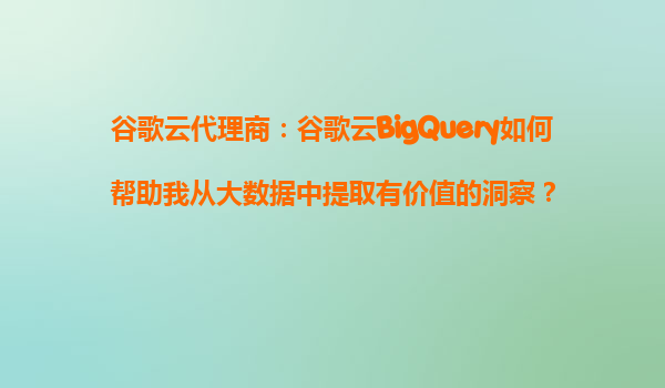 2025-08-20谷歌云代理商:谷歌云BigQuery如何帮助我从大数据中提取有价值的洞察? 在大数据时代,企业需要对海量数据进行快速分析,以获取有价值的商业洞察。作为谷歌云代理商,我们深知谷歌云BigQuery在这一过程中的关键...
