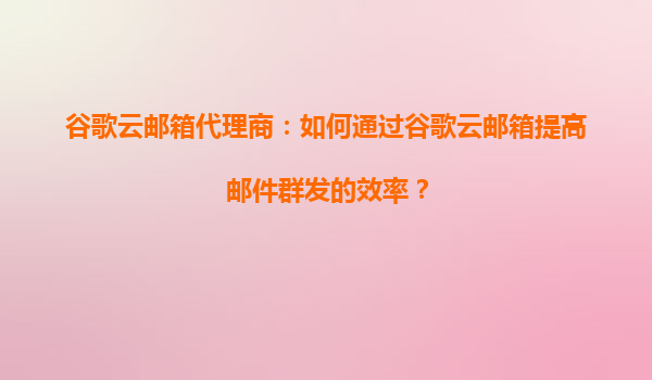 2025-08-20谷歌云邮箱代理商:如何通过谷歌云邮箱提高邮件群发的效率? 一、谷歌云邮箱的独特优势 谷歌云邮箱(GoogleWorkspace)作为企业级邮件解决方案,在邮件群发场景中具备显著优势: 高送达率-...