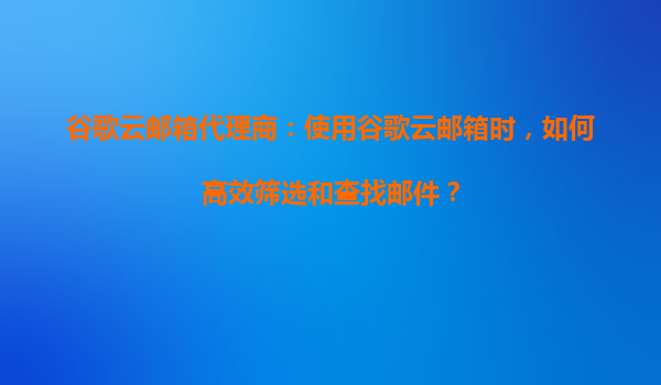 2025-08-20谷歌云邮箱代理商指南:如何高效筛选和查找邮件 为什么选择谷歌云邮箱? 谷歌云邮箱(GmailforBusiness)作为企业级电子邮件服务,凭借其强大的云计算基础设...