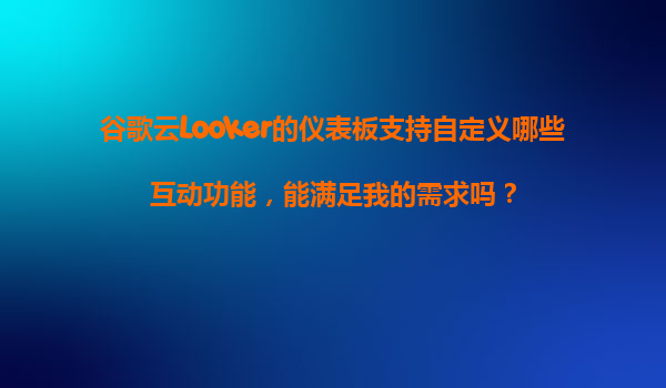 2025-11-04谷歌云Looker仪表板的自定义互动功能及其需求满足能力全面解析 一、Looker仪表板的核心互动功能概述 作为谷歌云旗下的商业智能平台,Looker提供了丰富的可视化仪表板互动功能,支持用户通过动态探索数据实...