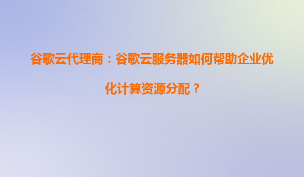 谷歌云代理商:谷歌云服务器如何帮助企业优化计算资源分配? 一、引言:计算资源分配的企业挑战 在数字化转型的浪潮中,企业面临计算资源分配效率低下、成本不可控、灵活...