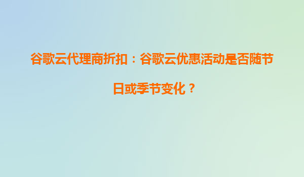 2025-08-17谷歌云代理商折扣:谷歌云优惠活动是否随节日或季节变化? 在当今云计算市场竞争激烈的环境下,谷歌云(GoogleCloudPlatform,简称GCP)以其强大的技术实力和灵活的定价策略吸引了大量企业用户。许多企业通过...