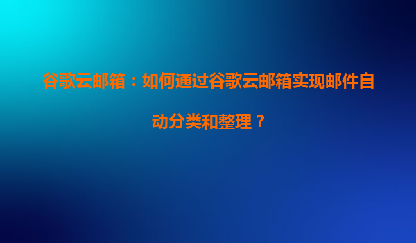 2025-08-17谷歌云邮箱:如何通过谷歌云邮箱实现邮件自动分类和整理? 在当今数字化的工作环境中,高效管理电子邮件已成为提升工作生产力的关键。谷歌云邮箱(Gmail)以其强大的功能和灵活的配置选项,...