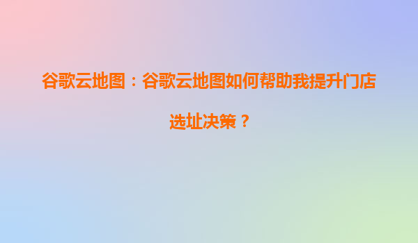 2025-08-17谷歌云地图:谷歌云地图如何帮助我提升门店选址决策? 引言:数字化时代下的选址挑战 在竞争激烈的商业环境中,门店选址直接关系到客流量、运营成本和品牌曝光。传统选址依赖人工调研或经验判断,存在...