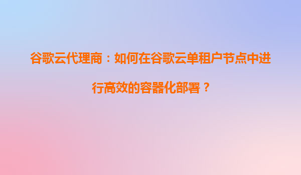2025-08-16谷歌云代理商:如何在谷歌云单租户节点中进行高效的容器化部署 引言 随着云计算技术的快速发展,越来越多的企业选择将应用迁移到云端。谷歌云(GoogleCloud)作为全球领先的云计算...