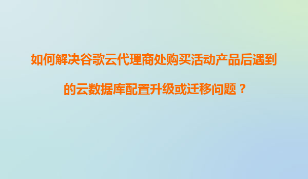 2025-11-04如何高效解决谷歌云代理商处购买活动产品后遇到的云数据库配置升级或迁移问题 一、问题背景与常见场景 当通过谷歌云代理商购买活动促销产品(如限时折扣实例)后,用户可能面临数据库配置升级或迁移的需求。典型场...