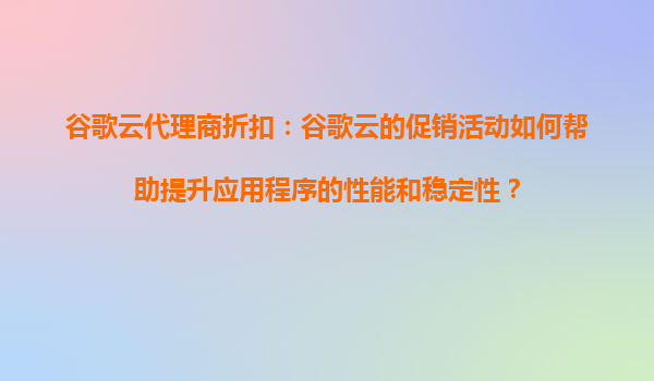 谷歌云代理商折扣:谷歌云的促销活动如何帮助提升应用程序的性能和稳定性? 引言 随着云计算技术的快速发展,越来越多的企业和开发者选择将应用程序迁移到云端...