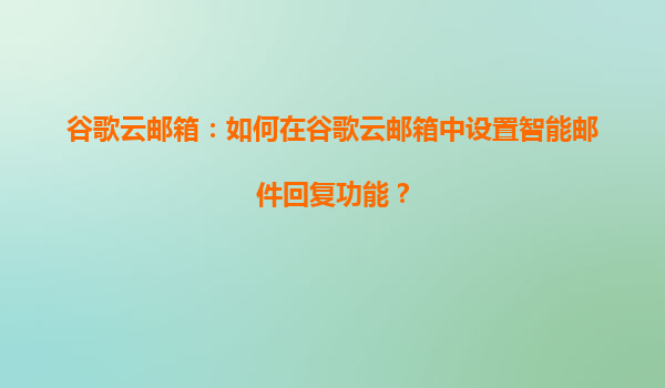2025-08-15如何在谷歌云邮箱中设置智能邮件回复功能? 一、前言:谷歌云邮箱的智能化优势 谷歌云邮箱(GoogleWorkspace)作为企业级电子邮件解决方案,以其高效、安全和智能化的功能著称。通过集成人工智能...