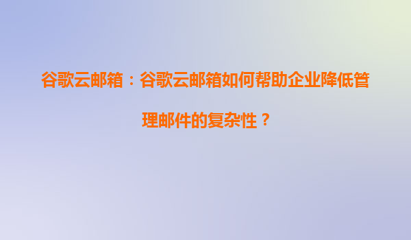 谷歌云邮箱如何帮助企业降低管理邮件的复杂性 在当今快节奏的商业环境中,电子邮件仍然是企业沟通的核心工具之一。然而,随着业务规模的扩大和团队成员的增加,电子邮件管理往往会变得复杂且耗时。谷歌云邮箱...