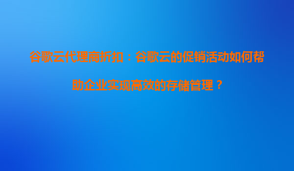 2025-08-14谷歌云代理商折扣:谷歌云的促销活动如何帮助企业实现高效的存储管理? 在当今数字化时代,数据存储和管理已成为企业运营的核心需求之一。谷歌云(GoogleCloud)作为全球领先的云计算服务提供商,凭...