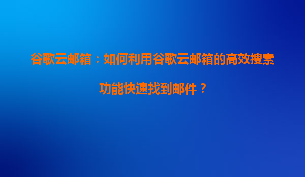 2025-08-14谷歌云邮箱:如何利用谷歌云邮箱的高效搜索功能快速找到邮件? 一、谷歌云邮箱搜索功能的优势 谷歌云邮箱(Gmail)作为全球领先的电子邮件服务之一,其强大的搜索功能是其核心优势之一。谷歌云邮箱依托谷歌...