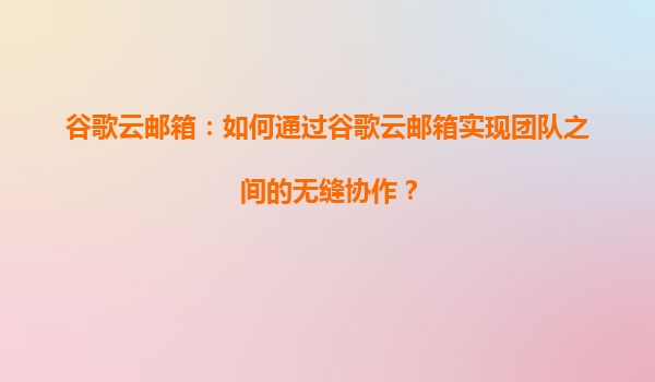 谷歌云邮箱:如何通过谷歌云邮箱实现团队之间的无缝协作? 引言 在现代企业中,团队协作的效率直接影响着业务的发展。谷歌云邮箱(Gmail)作为全球领先的企业邮件服务之一,不仅提供了强大的邮件管理功...