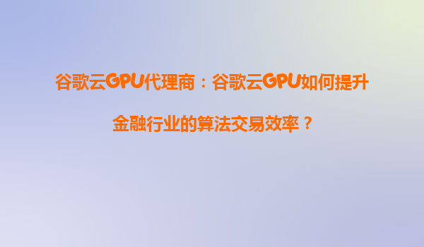 2025-08-14谷歌云GPU代理商:谷歌云GPU如何提升金融行业的算法交易效率? 引言 随着金融科技的快速发展,算法交易已成为全球金融市场的重要组成部分。为了在激烈的市场竞争中保持领先地位,金融机构需要更高效、更智...