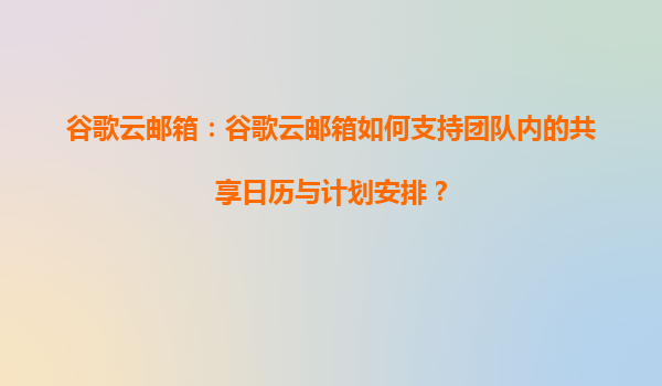 谷歌云邮箱如何支持团队内的共享日历与计划安排 一、谷歌云邮箱的团队协作核心功能 谷歌云邮箱(GmailforBusiness)作为谷歌工作空间(GoogleWorkspace)的...