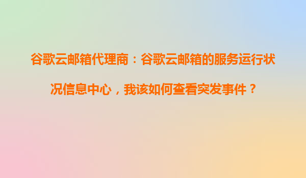 2025-11-01谷歌云邮箱代理商指南:如何查看服务运行状况与突发事件 一、谷歌云邮箱服务运行状况信息中心简介 谷歌云邮箱(GmailforBusiness)作为企业级邮件服务,其稳定性和可靠性至关重要。谷...